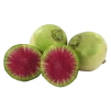 Ce radis est rond à la peau vert et blanc et une chair rouge grenadine Il est doux et croquant, juteux et peu piquant. Ce radis se consomme nature, en salade, ou poêlé en lamelles. Idéal dans les apéros crudité.